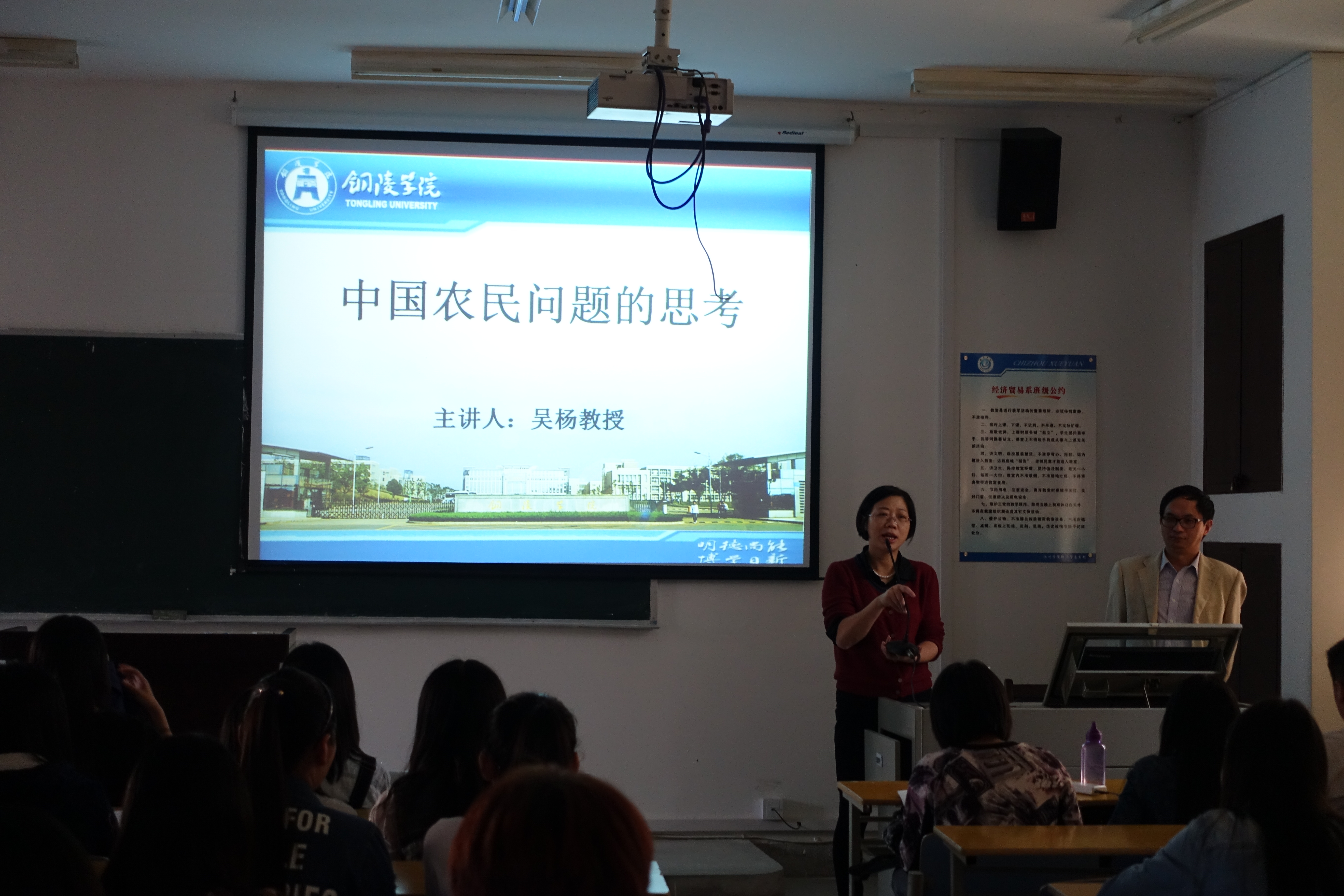 10月16日,铜陵学院经济学院党总支书记、院长吴杨教授应邀来我院讲学。讲座在博识南403教室举行。565net必赢客户端院长项桂娥教授出席并主持讲座。565net必赢客户端国际经济与贸易等相关专业学生认真聆听了报告。