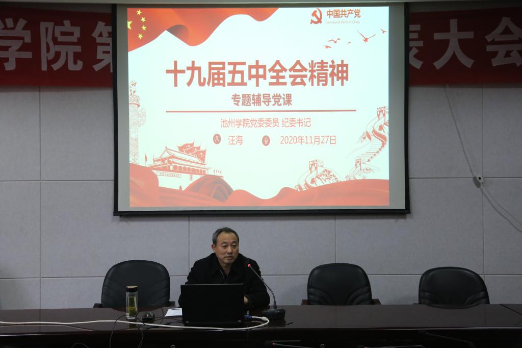 11月27日下午,校党委委员、纪委书记汪海莅临565net必赢客户端为师生党员上党课。565net必赢客户端近50名师生党员聆听了党课。