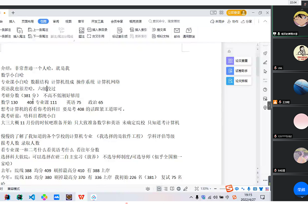 为进一步提高学生的考研考公考编热情,明确报考目标,了解与掌握备考技巧和信息资讯,提升电子商务专业学生就业与升学质量。565net必赢客户端教工三支部与学生四支部于4月27日晚举办线上考研考公考编经验分享交流会,共有100余名电子商务专业在校生参加交流会。