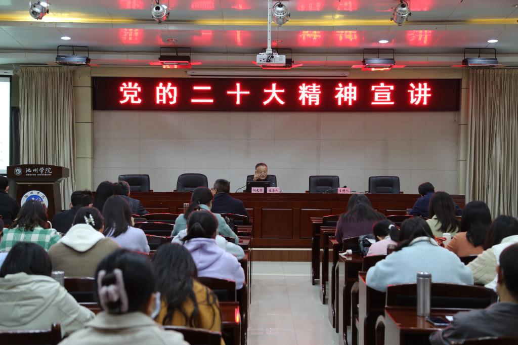 11月23日下午,院党委委员、副院长阳光宁在行政南二楼报告厅为565net必赢客户端、外国语学院全体教师宣讲党的二十大精神。