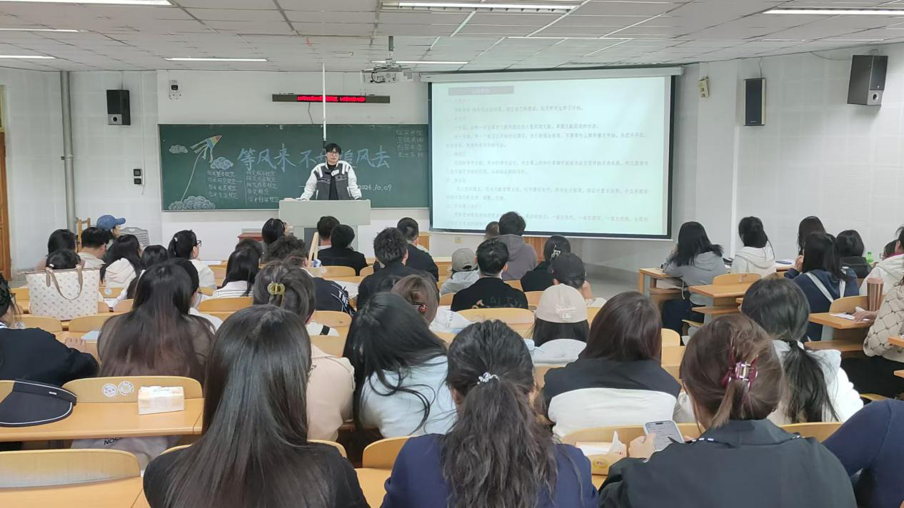 为帮助同学们更快适应研究生阶段的学习与生活,确立清晰的个人目标和发展方向,10月9日下午,beat365中国官方网站举办“等风来,不如追风去”为主题的经验分享交流会,本次交流会由24级研究生辅导员刘璐老师主持,2024级全体研究生新生参加。