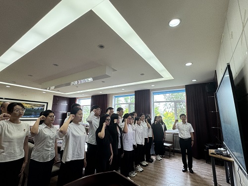 刘伟作为领誓人,李丙文作为监誓人,带领支部全体党员重温入党誓词。