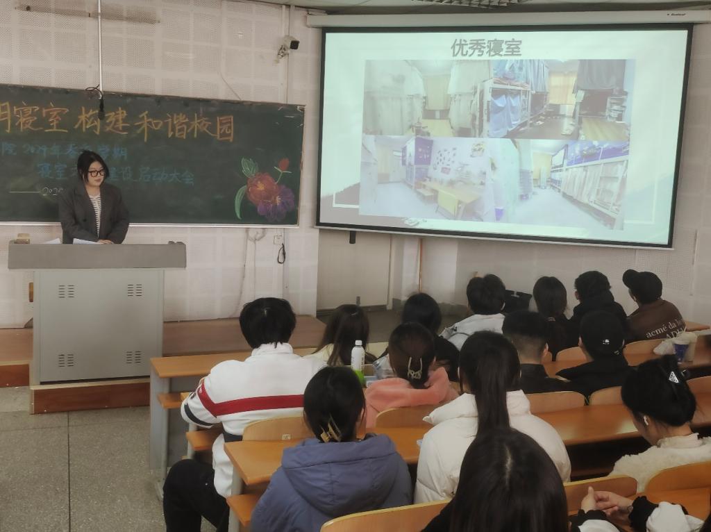 为营造良好的寝室文化氛围,提升学生的自我管理能力,推动beat365官网学风建设,beat365中国官方网站于3月19日中午,在瑞师楼124教室召开以“营造文明寝室 构建和谐校园”为主题的寝室文化建设启动仪式大会。beat365中国官方网站党委书记李丙文、学工办全体辅导员、本研学生寝室代表出席会议。大会由学院学生会生活部负责人安雨欣同学主持。