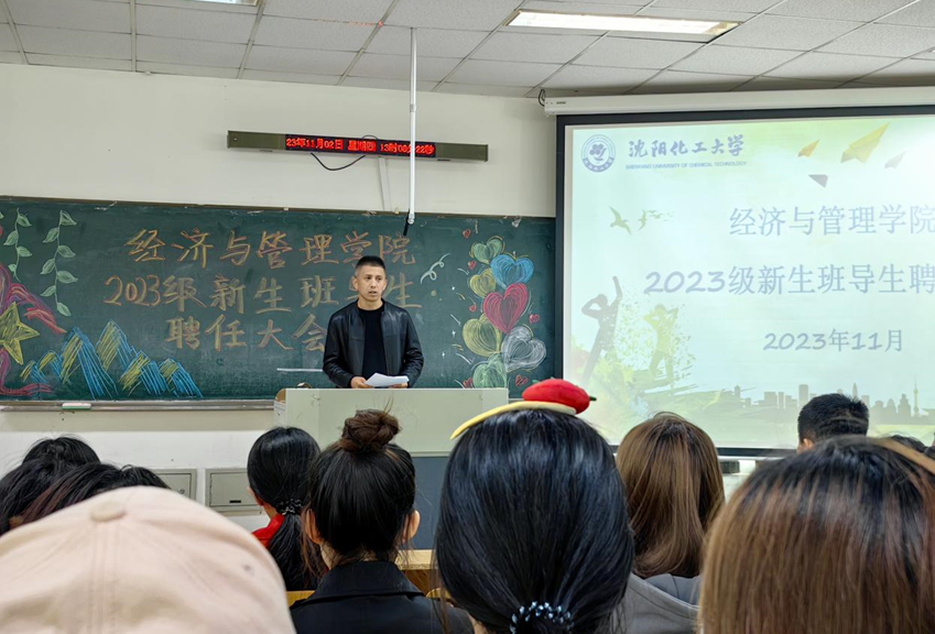 传薪寄火新征程,淬砺致臻展风华。为全面落实党中央关于高校思想政治工作的指示精神,扎实推动全员育人、全过程育人、全方位育人格局,深入推进我校“113”人才培养体系改革,充分发挥专业教师、高年级骨干学生在学生学习生活中的重要性。近日,beat365中国官方网站召开了2023级新生班导师、班导生聘任大会。学院班子成员、各教研室主任、全体学工办教师以及2023级新生参会。会议由2023级新生辅导员王怀主持。