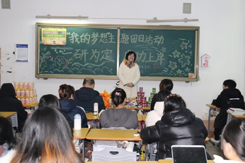为了推进“一站式”学生社区综合管理模式建设,不断加强团学建设、充分发挥朋辈引领示范作用,进一步引导考研学生自我管理,12月5日,beat365中国官方网站以全体考研学生为成员,成立了2021级临时团支部,并以“我的梦想”为主题在考研自习室(景唐楼112室)开展了一次特殊主题团日活动。beat365中国官方网站党委书记李丙文、院长王蓉、副书记关婷、全体辅导员参加了活动,活动由2021级辅导员刘伟主持。