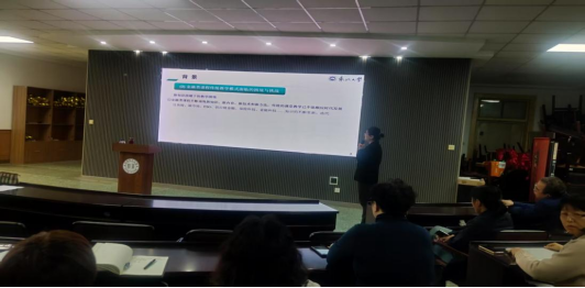 苑莹教授从以下主题与学院教师进行探讨交流(1)科技创新背景下的新文科建设需求;(2)金融类课程传统教学模式面临的困境与挑战;(3)金融类一流课程建设存在的问题;(4)探索基于BOPPPS教学模式的混合式教学路径。