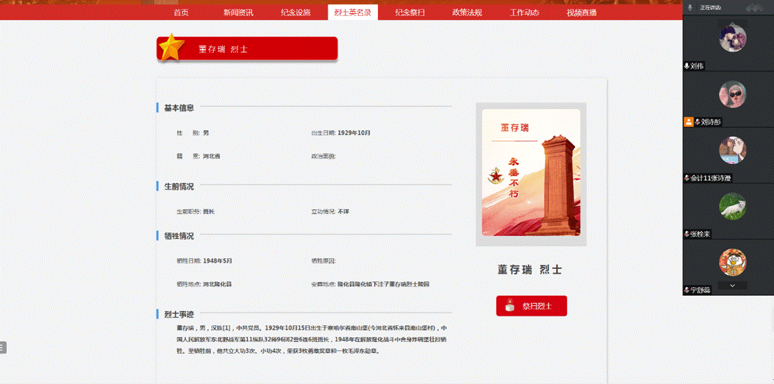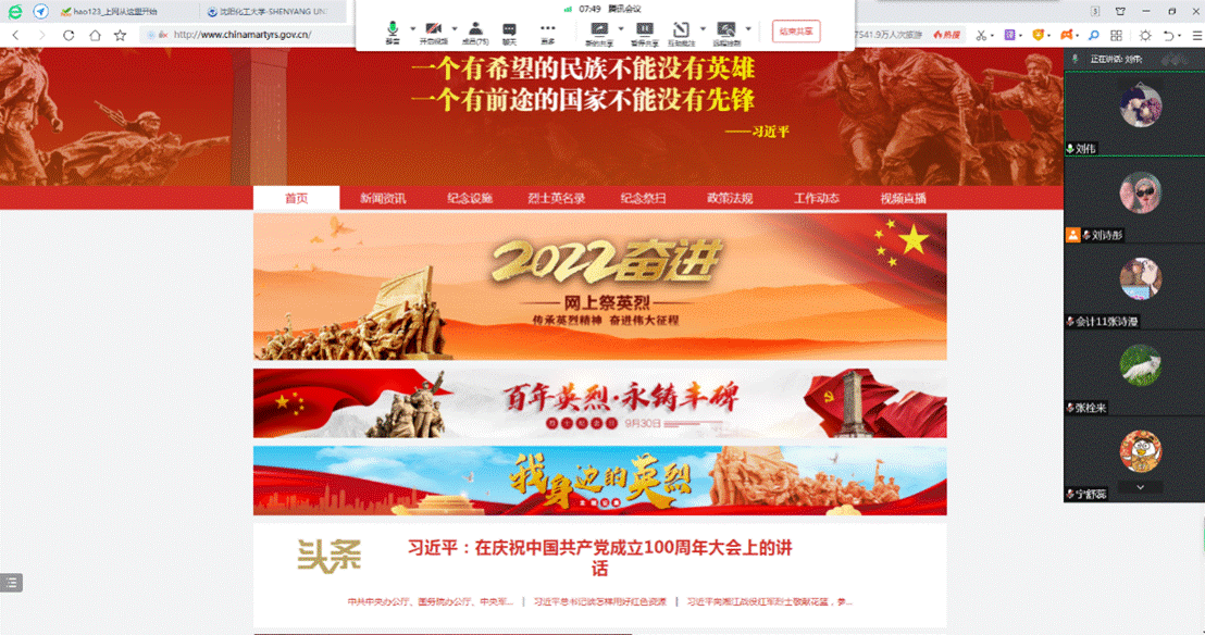 经管本科生党支部开展“云端祭英烈”党日活动
