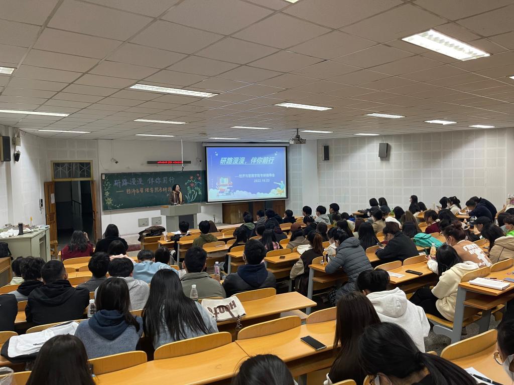 2022年10月22日18时30分,beat365中国官方网站于通明楼338教室召开了面向2019级和2020级本科生的考研指导会。会议由王怀老师主持,王蓉院长进行经验分享与指导。本次会议在极大地鼓舞了2019级本科生考研信心的同时,也为2020级本科生做出了细致的考研规划。