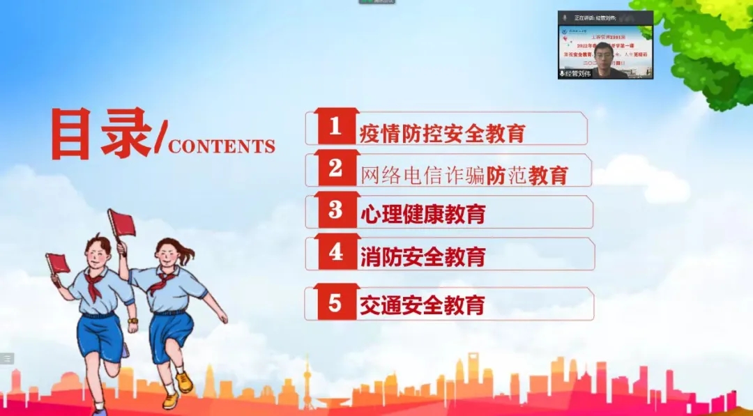 2021级以安全教育为主题,围绕疫情防控、防范网络诈骗、心理健康、消防安全和交通安全等方面内容开展宣讲,教育引导2021级学生提升安全素养,增强防范意识。