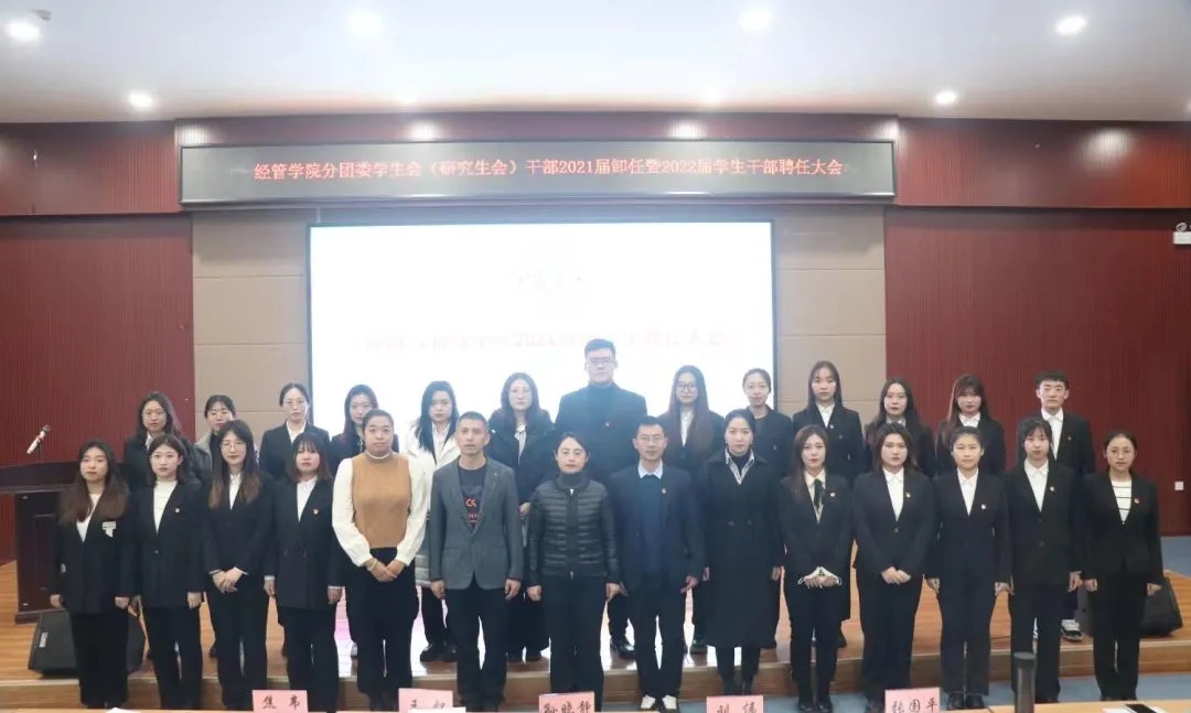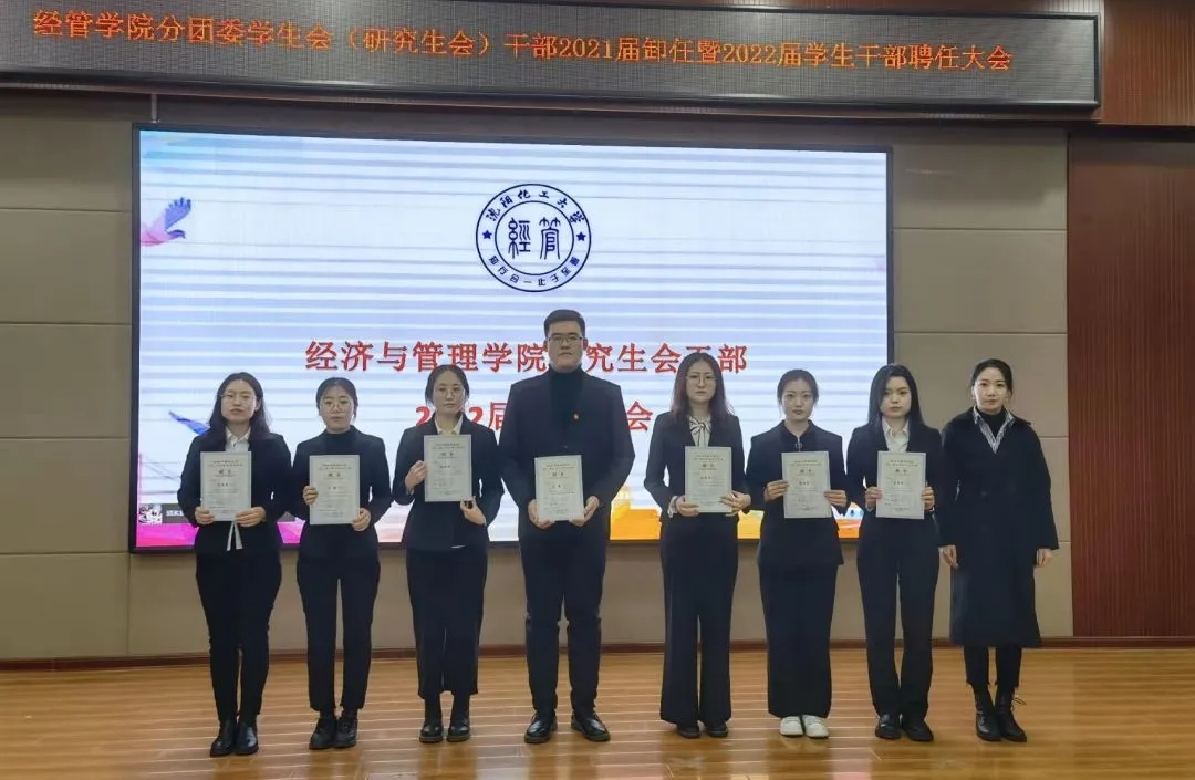 随后,进行的是分团委学生会学生干部2021届卸任暨2022届聘任大会。18级辅导员焦韦宣读2021届学生会干部卸任决定,党总支副书记孙晓静宣读2022届学生会干部聘任决定,学工办全体教师先后为受聘的学生干部颁发聘书。而后,孙晓静副书记作总结性发言,对新一届受聘学生干部提出新的期望和要求。