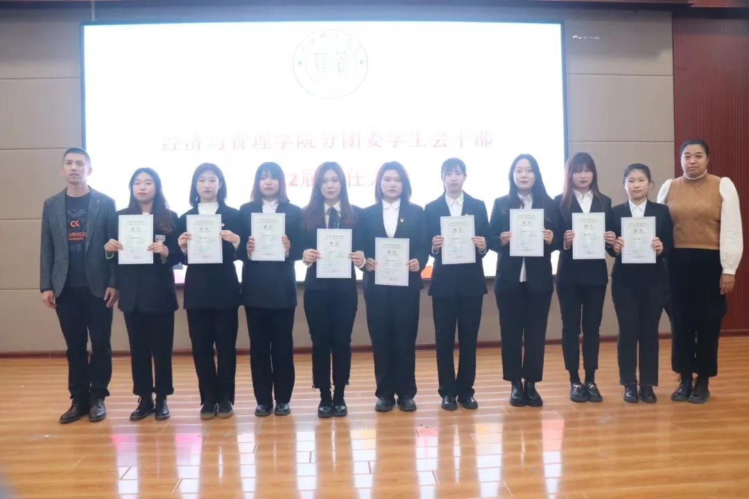 12月8日下午13:30,beat365中国官方网站在青年之家召开了班导生、学生会干部聘任大会。学工办全体教师、全体受聘学生、部分学生会代表参会,大会由分团委书记、19级辅导员王怀主持。