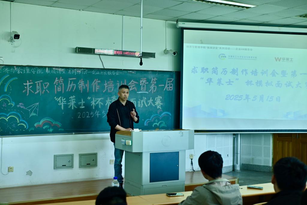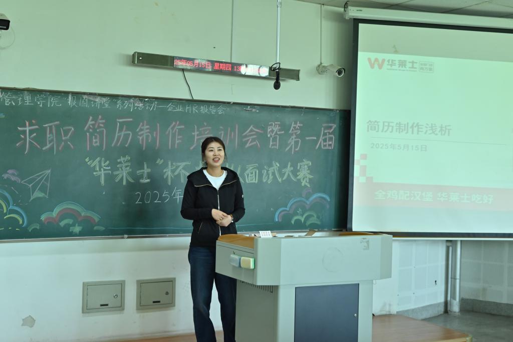 姚琳主管根据当前行业需要和学生特点,对学生进行就业指导,并专门针对简历优化进行指导。培训会上,姚琳主管以“HR眼中的‘合格简历长什么样’”为主题,系统解析了企业筛选简历的底层逻辑。通过展示真实岗位JD(职位描述),重点剖析了经管类专业简历的核心原则,真实、成果展示、视觉舒适度等核心模块设计在简历制作过程中发挥着重要作用。